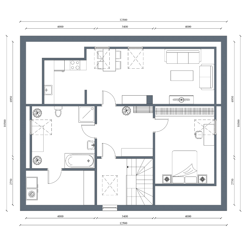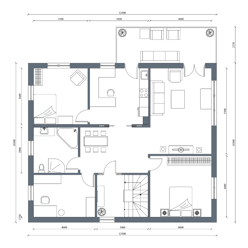 Natürlich gestalten Sie Ihr Haus frei nach Ihren Wünschen. Da wir zeitlich einen gewissen Vorsprung haben, zeigen wir Ihnen hier unsere Variante.