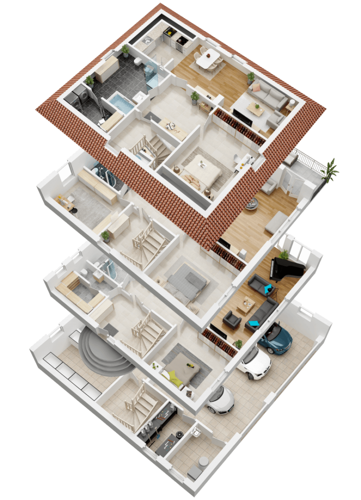 So können Sie frei entscheiden, ob Sie auf zwei oder drei Wohnungen leben möchten oder Ihre Villa auf drei Etagen mit grenzenloser Lebensfreude füllen.