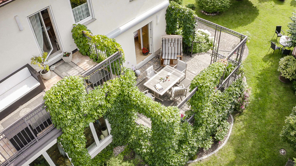 Die Etagen sind in sich geschlossen: Immer mit Küche, Bad und Terrasse.